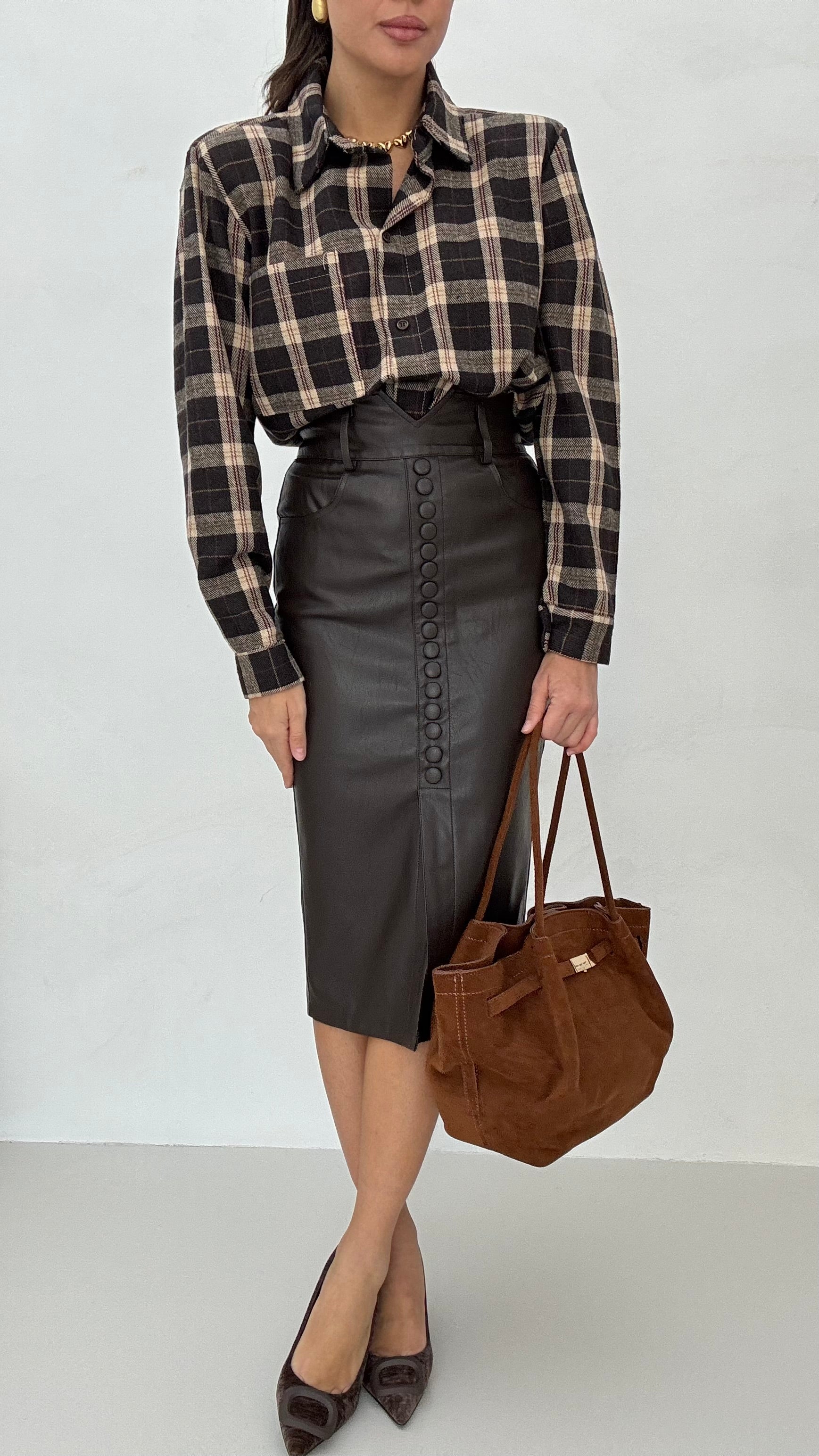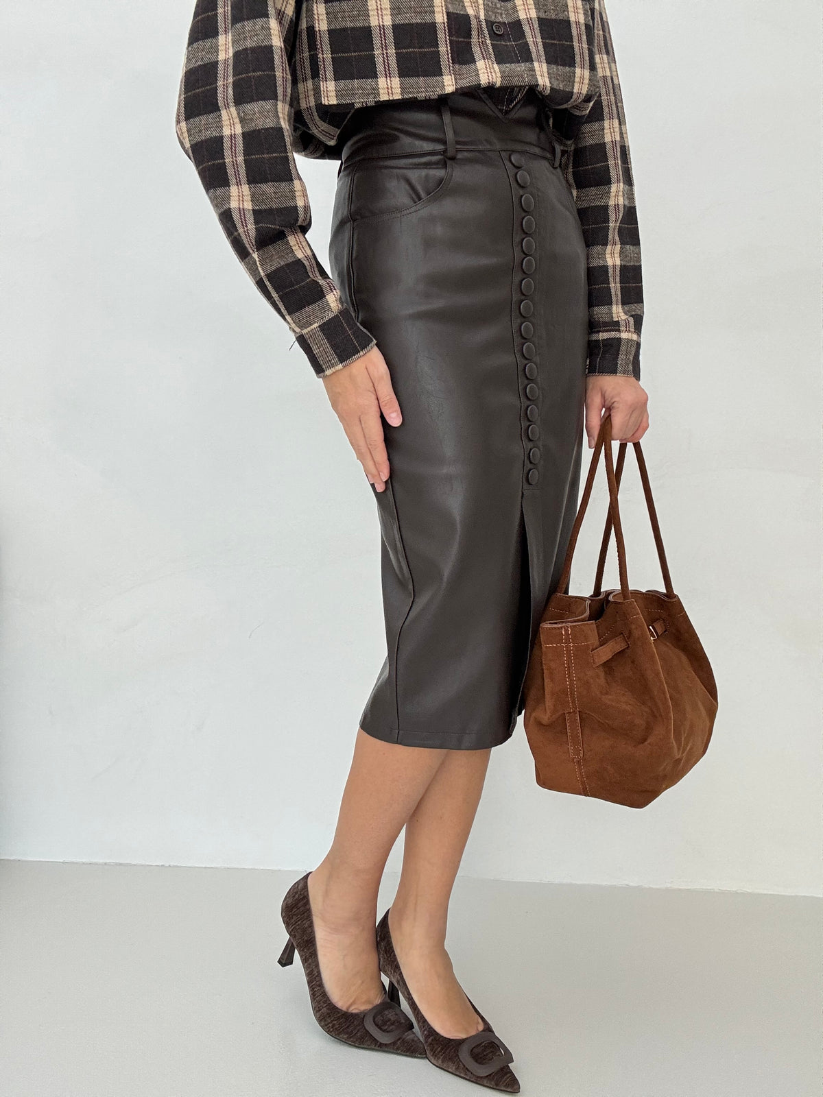 Gonna ‘BOTTONCINI’ in ecopelle Cacao