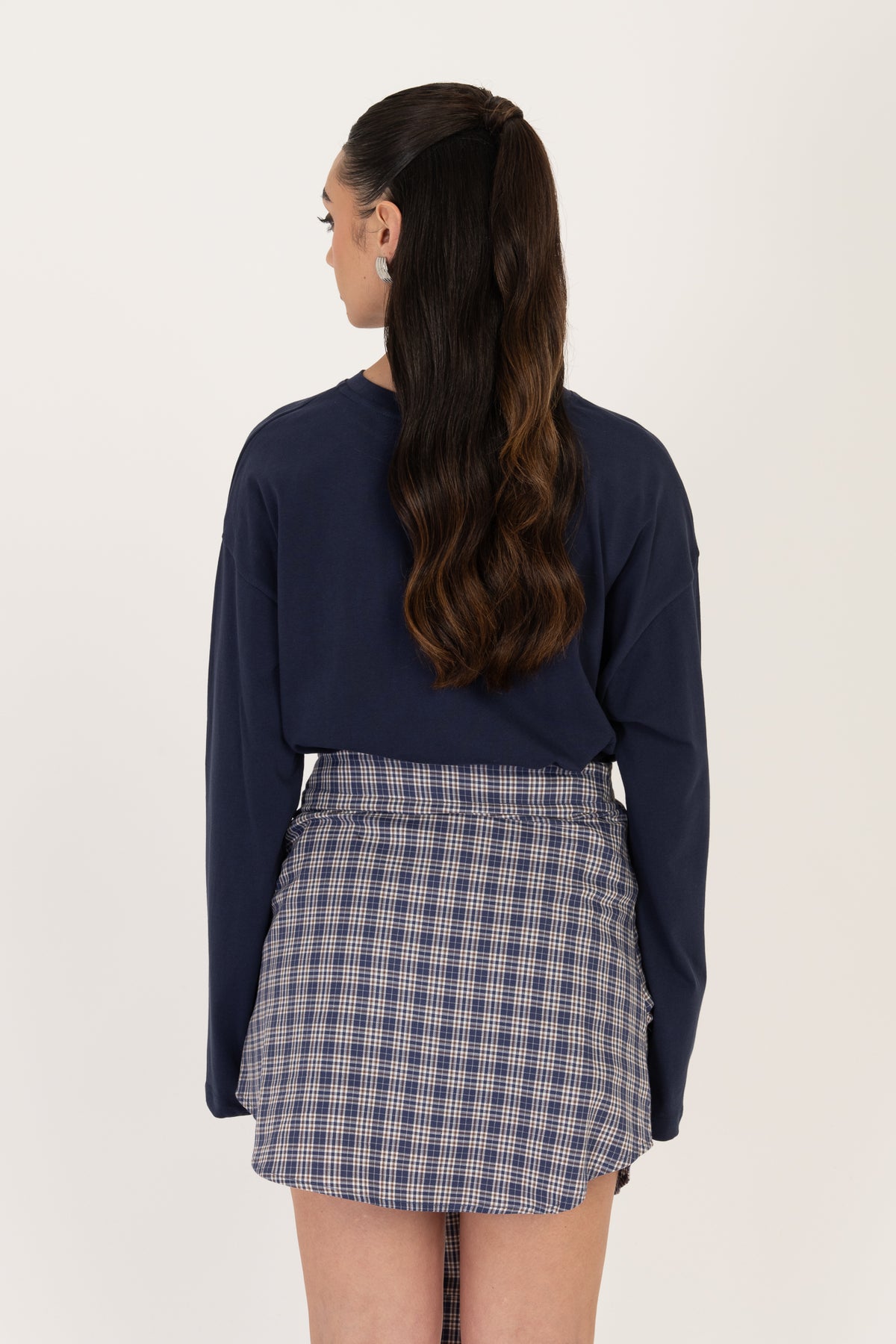 La modella é alta 1.69 e solitamente indossa taglia S, della gonna indossa taglia S, chiusura con bottoni, maniche della camicia cucite lateralmente effetto cintura, poco elasticizzata, veste regolarmente.