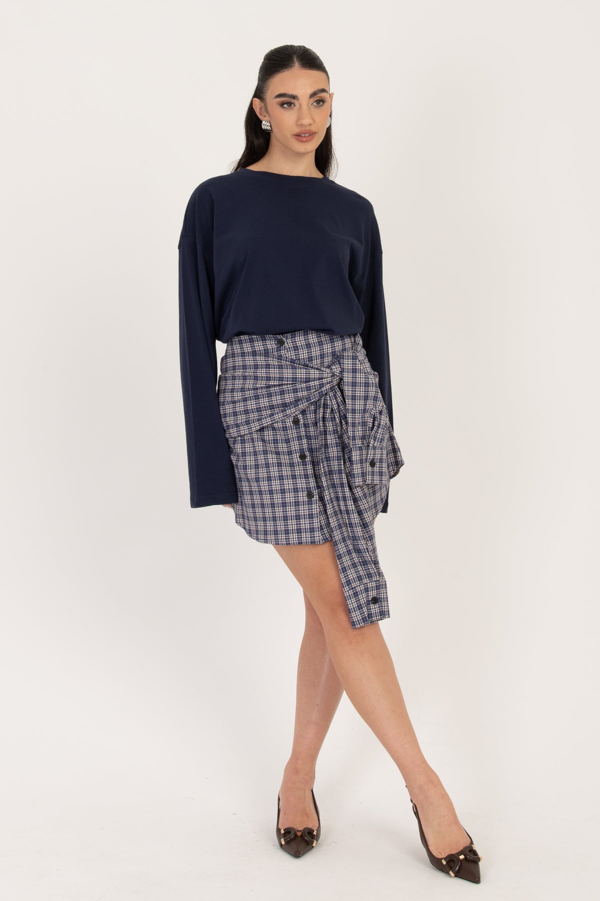 Gonna ‘CON FINTA CAMICIA’ BY LUMINA’ Blu e Cacao