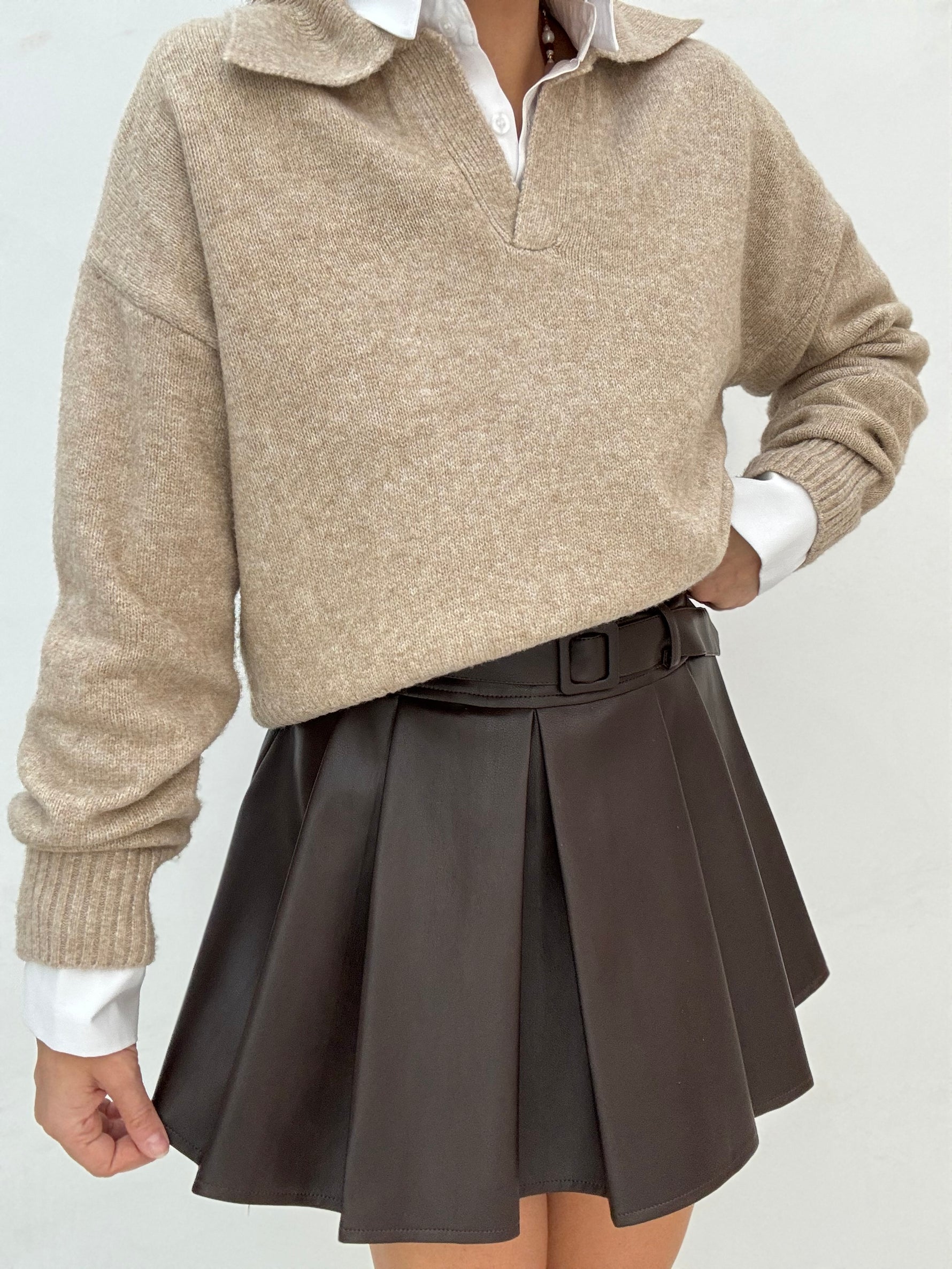 Gonna ‘ECOPELLE’ Plissettata Cacao