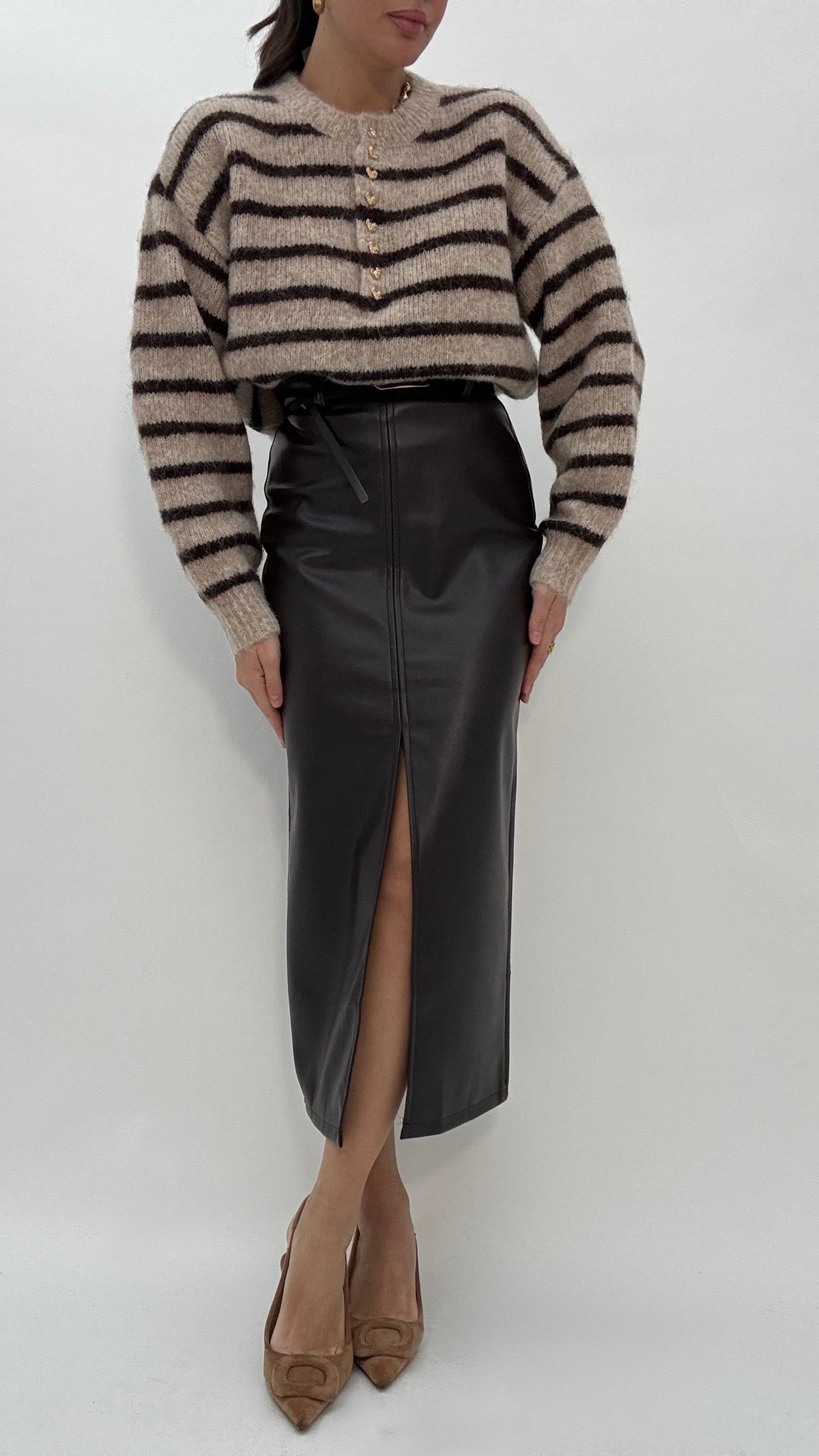Gonna ‘SPACCO CENTRALE’ in ecopelle Cacao