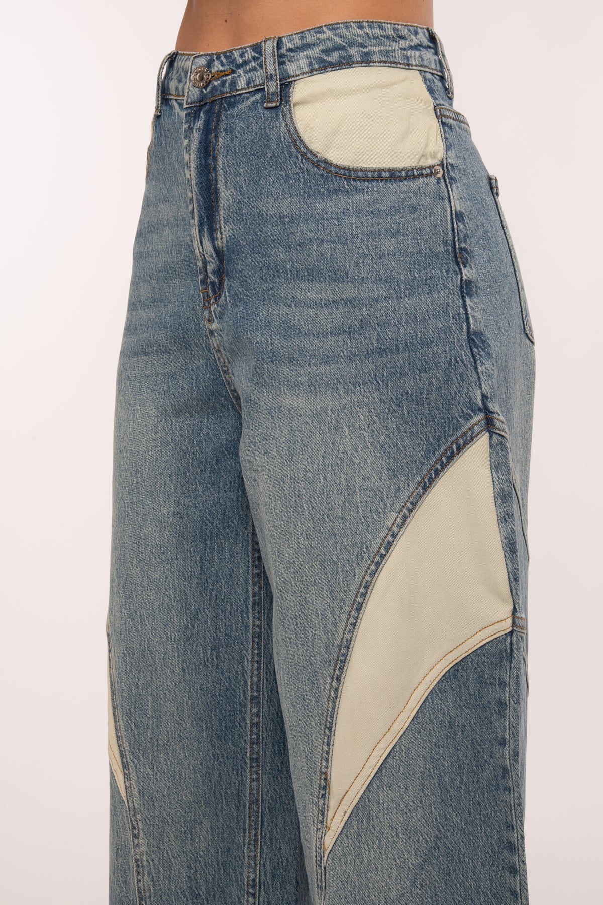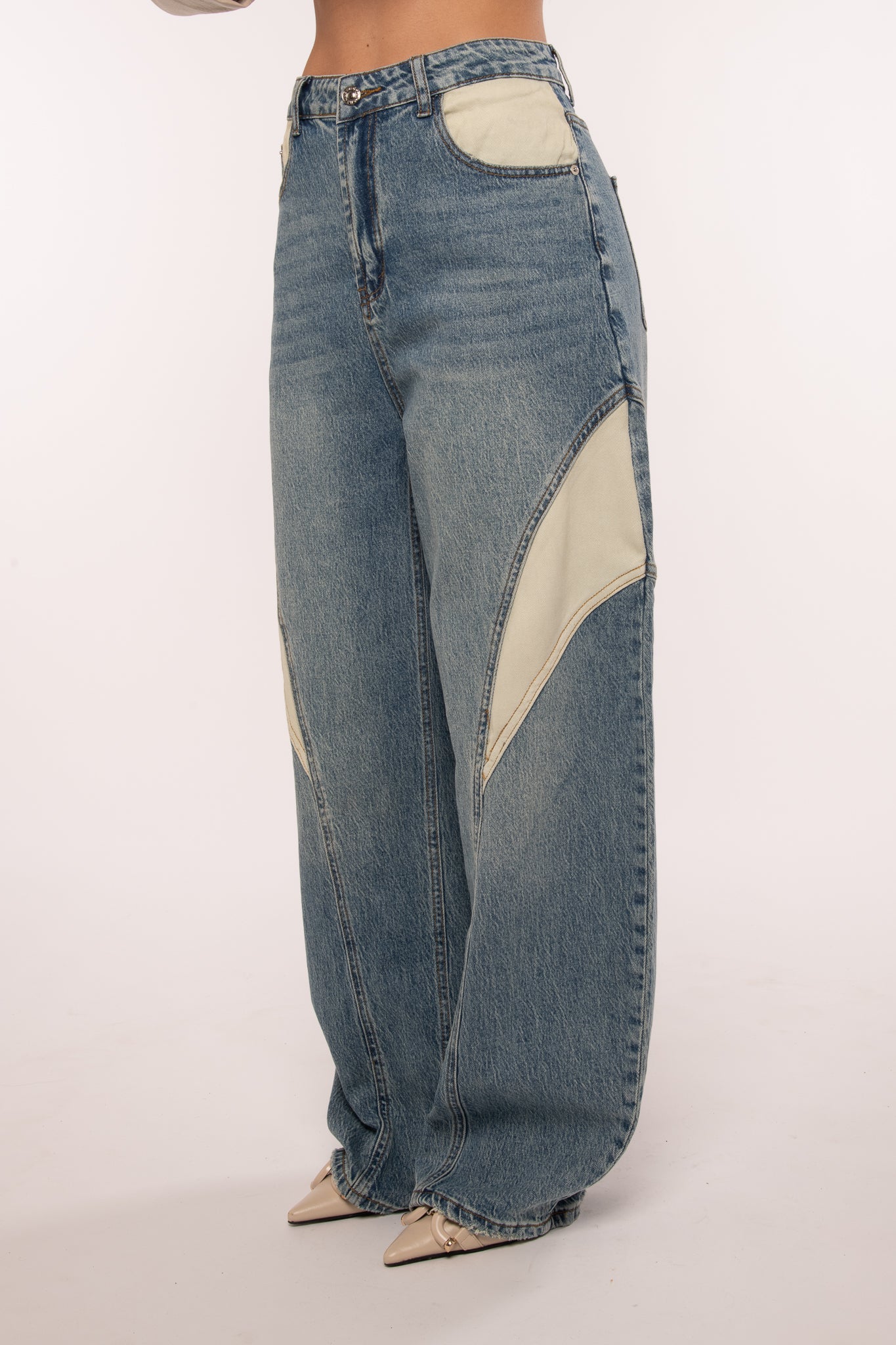 Il jeans è leggermente elasticizzato, consigliamo la taglia regolare per un effetto come in foto, altrimenti consigliamo di acquistare una taglia in più per un effetto più morbido, gamba morbida, vita alta, chiusura zip e bottone, dettagli panna e cuciture sul davanti.