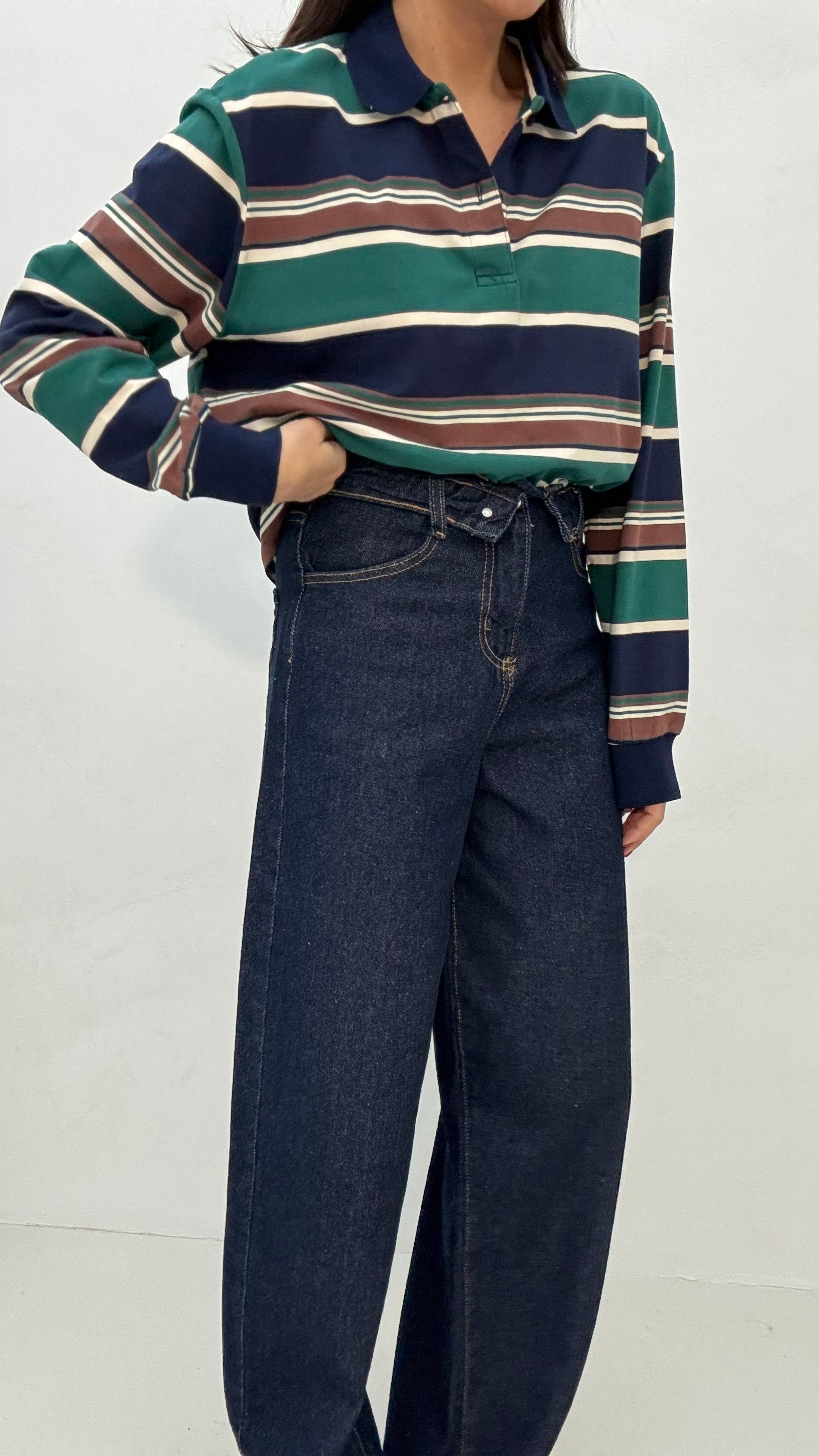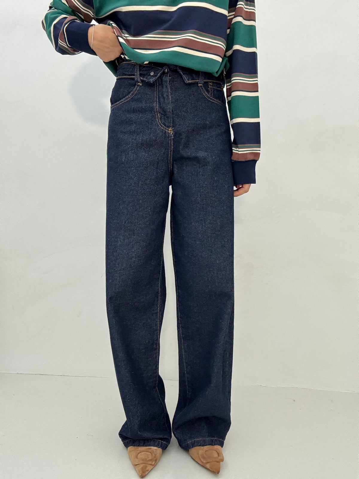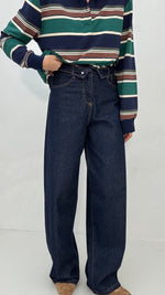 Jeans vita alta non elasticizzato, gamba larga, chiusura con bottone e zip, tasche vere, per un effetto più morbido e vita bassa acquistare una taglia in più.