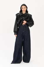 Il jeans poco è elasticizzato, consigliamo la taglia regolare, per un effetto come in foto piu morbido acquistare una taglia in piu, gamba morbida, vita alta, chiusura zip e bottone, tasche sul retro in eco-pelle e borchie