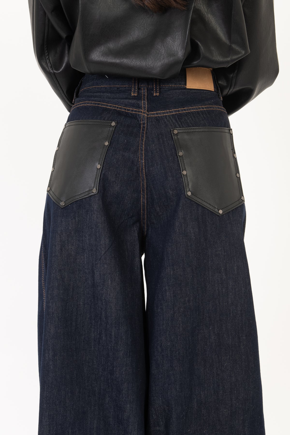 Jeans ‘TASCHE ECO-PELLE E BORCHIE’ Lavaggio Zero