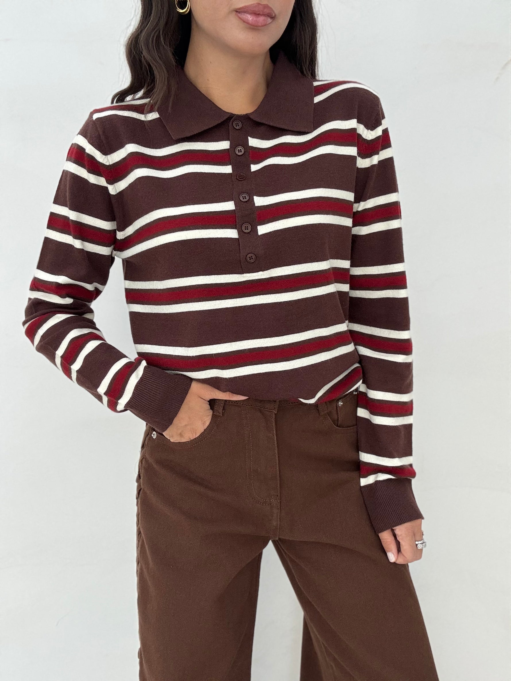 Maglia/Polo ‘RIGHE’ Cacao e Bordeaux