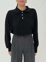 Prezzo unitario perRobi è alta 1.63, solitamente indossa taglia XS, il maglione polo è taglia unica, veste fino a taglia L, elasticizzato, lunghezza regolare, il colletto presenta tre bottoni veri.