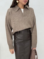 Maglione taglia unica, lunghezza regolare, colletto e scollo a V, elasticizzato, veste da taglia Xs ad una L abbondante.