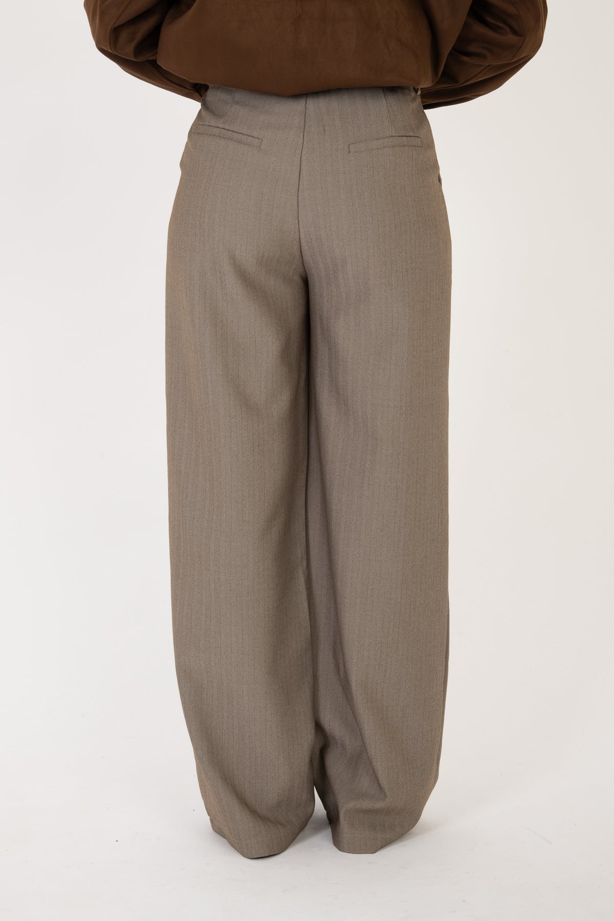 Il pantalone è leggermente elasticizzato, consigliamo la taglia regolare, per un effetto come in foto piu morbido acquistare una taglia in piu, gamba morbida, non ha elastico sul retro, vita alta con chiusura zip e bottone con gancetto a scomparsa, gamba morbida e dritta, tasche sul davanti e pence.