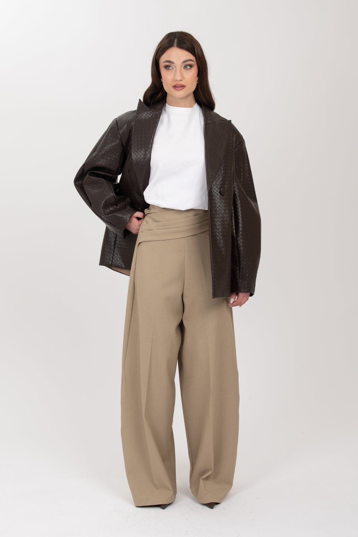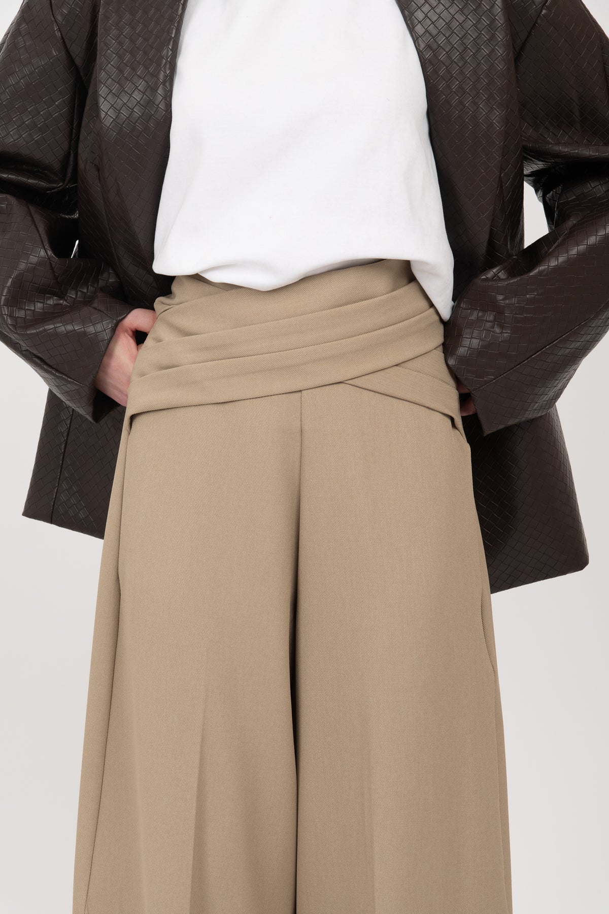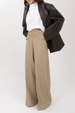 Pantalone palazzo vita alta con chiusura zip sul retro.