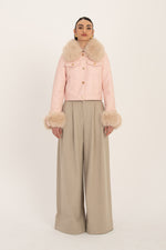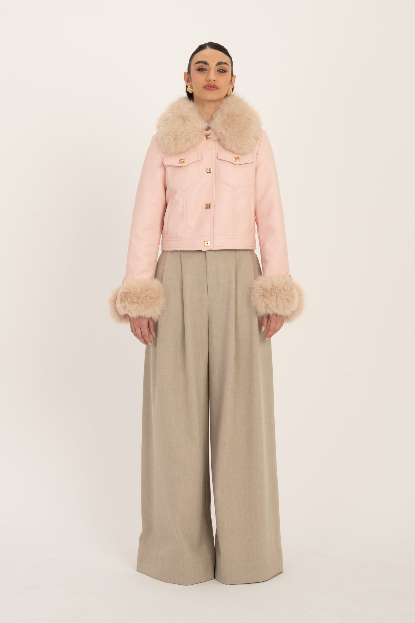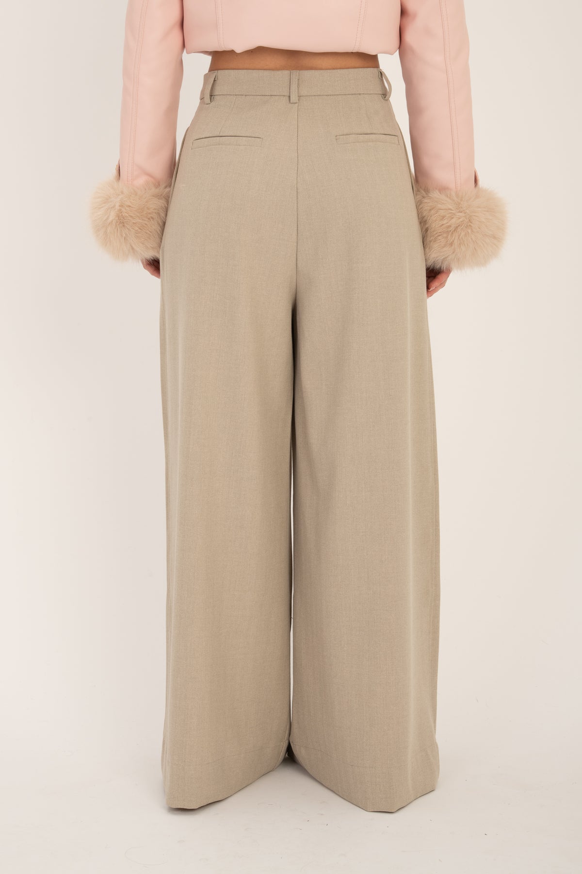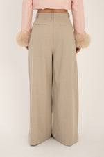 Il pantalone è leggermente elasticizzato, consigliamo la taglia regolare, per un effetto come in foto piu morbido acquistare una taglia in piu, gamba morbida, non ha elastico sul retro, vita alta con chiusura zip e gancetto a scomparsa, cuciture sul davanti, gamba morbida e larga, tasche sul davanti e pence.