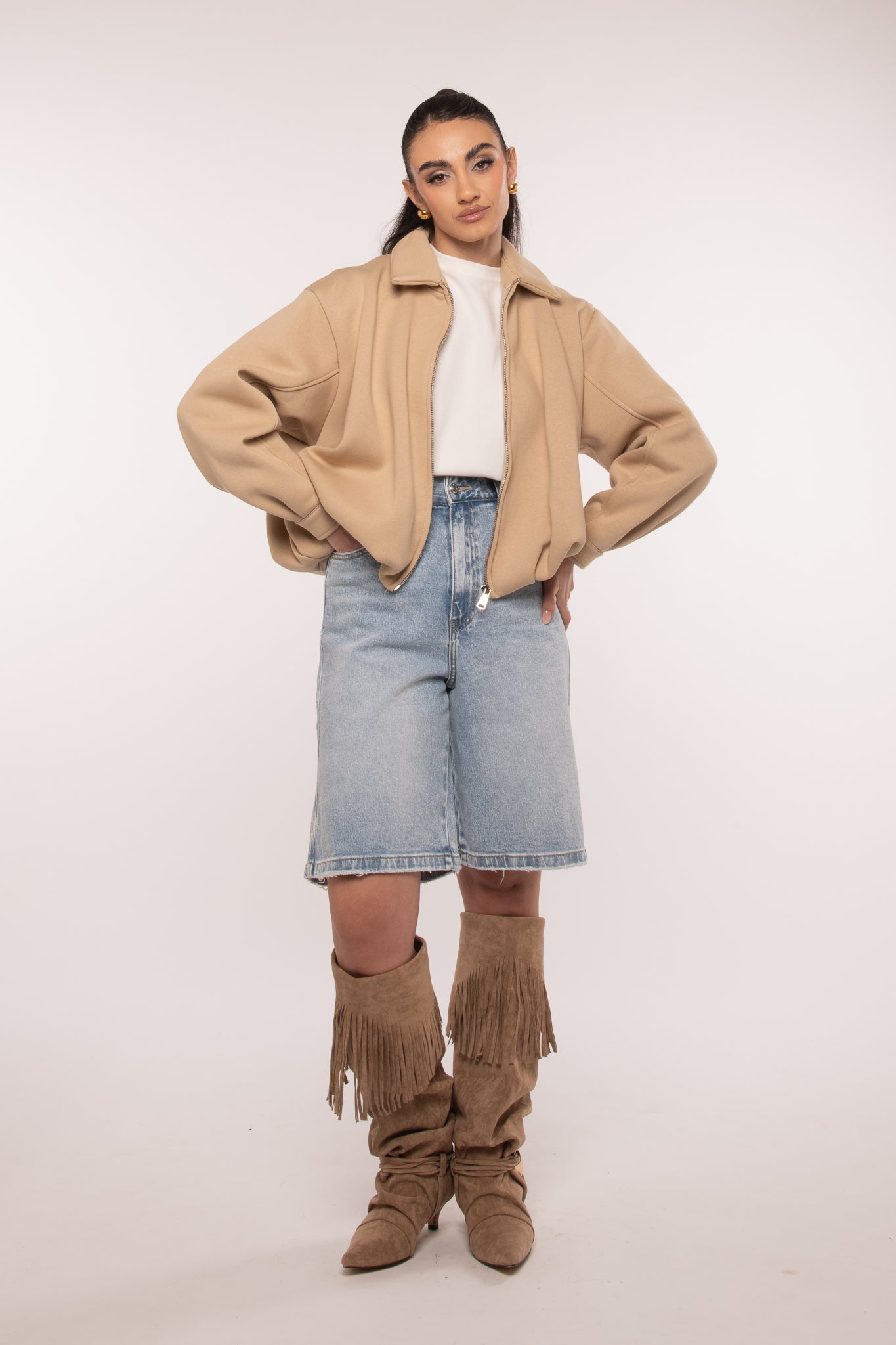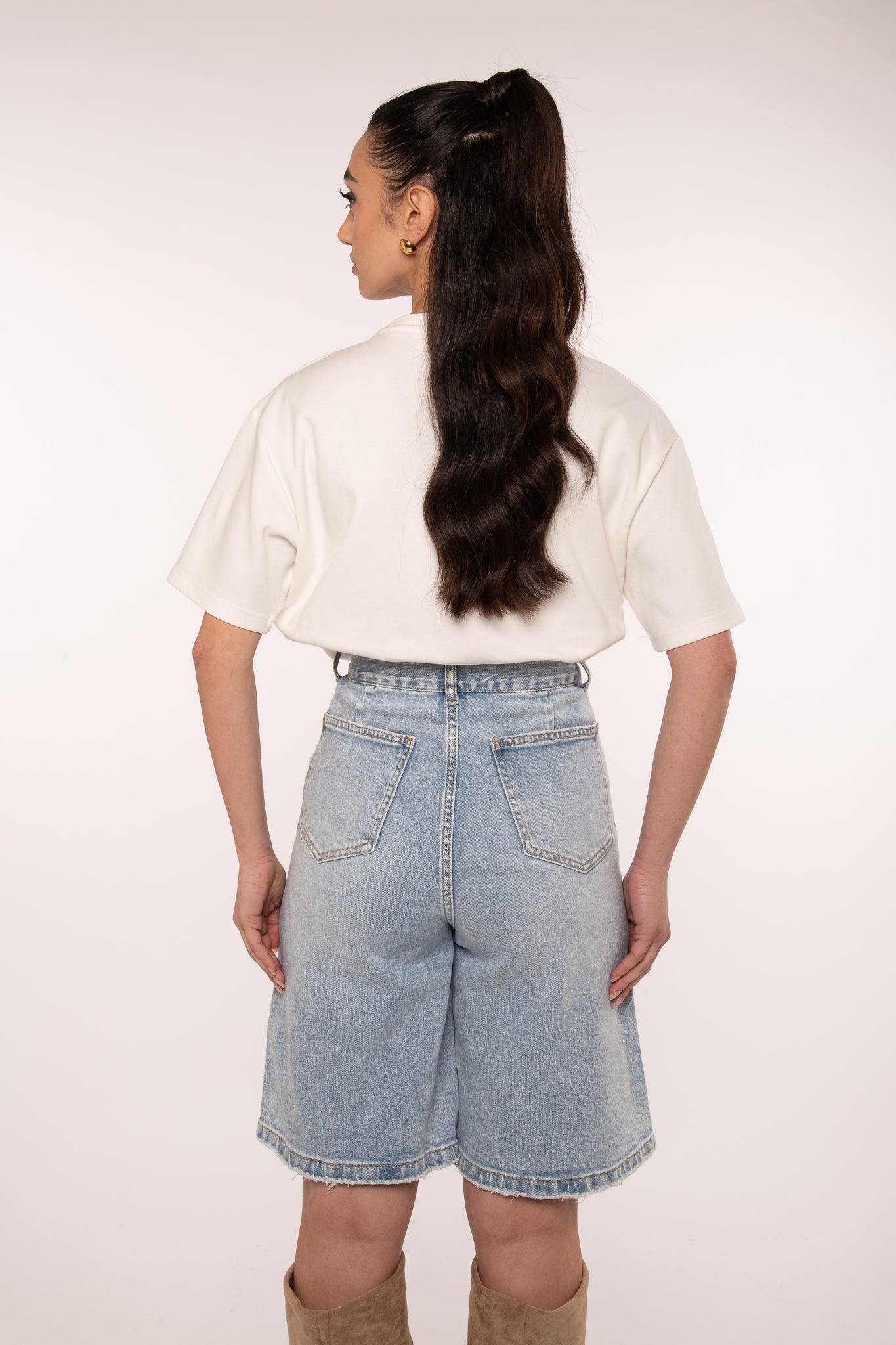 Bermuda chiusura con bottone e zip tasche vere sul davanti e sul retro, gamba morbida e leggermente svasata.