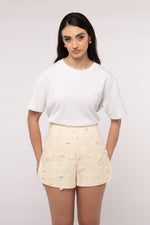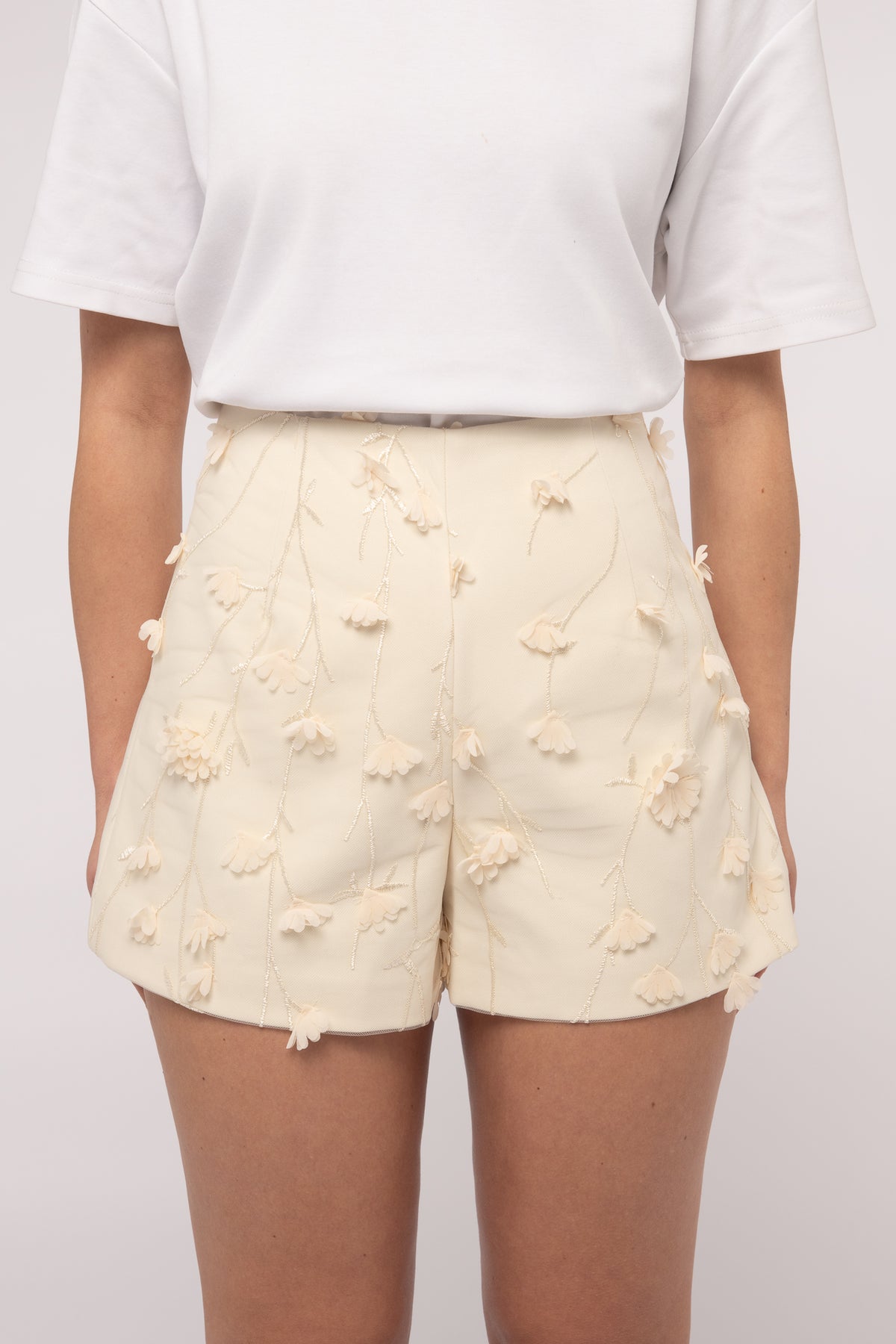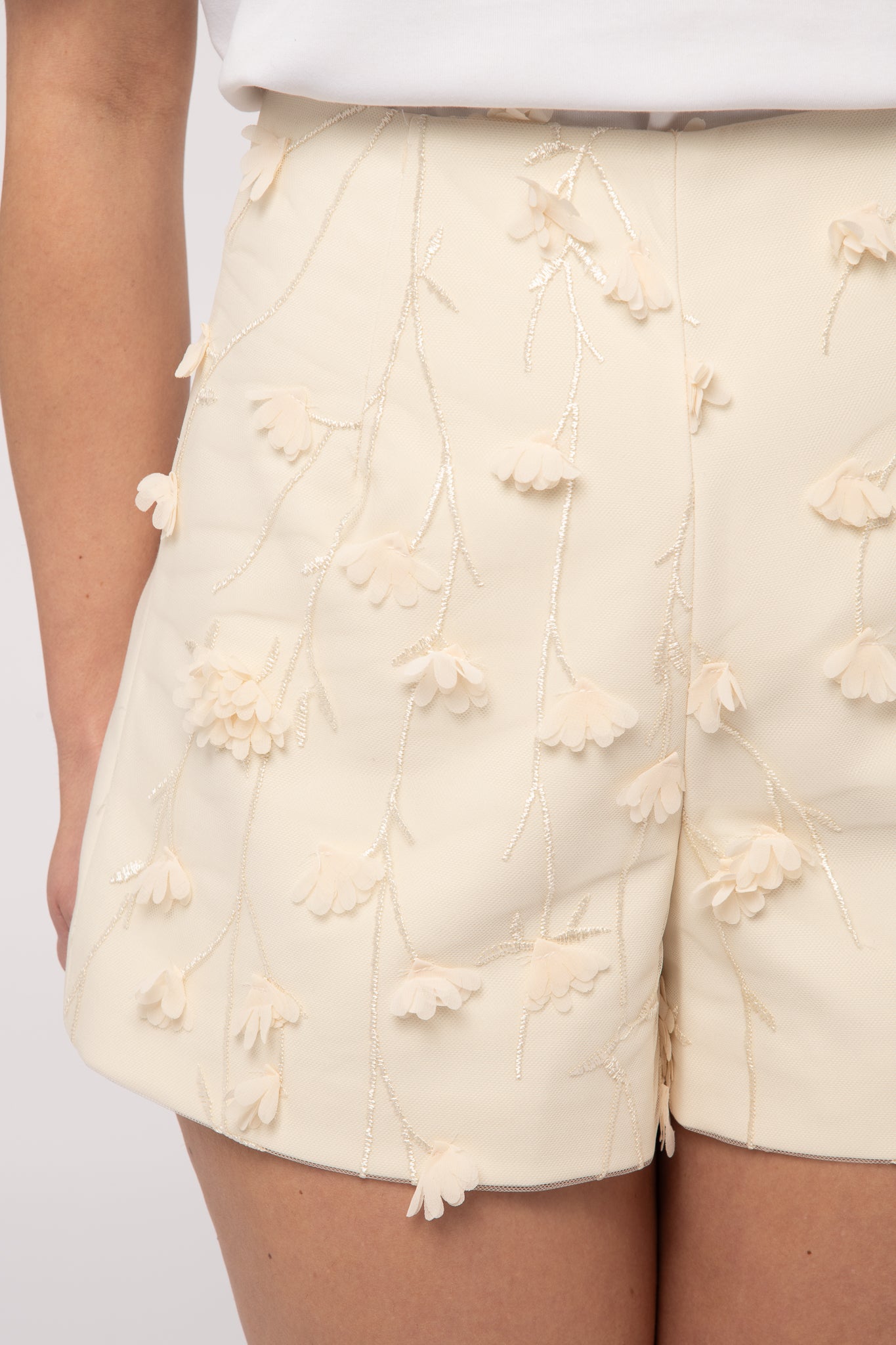 Pantaloncino ‘APPLICAZIONI FLOREALI ’ Panna