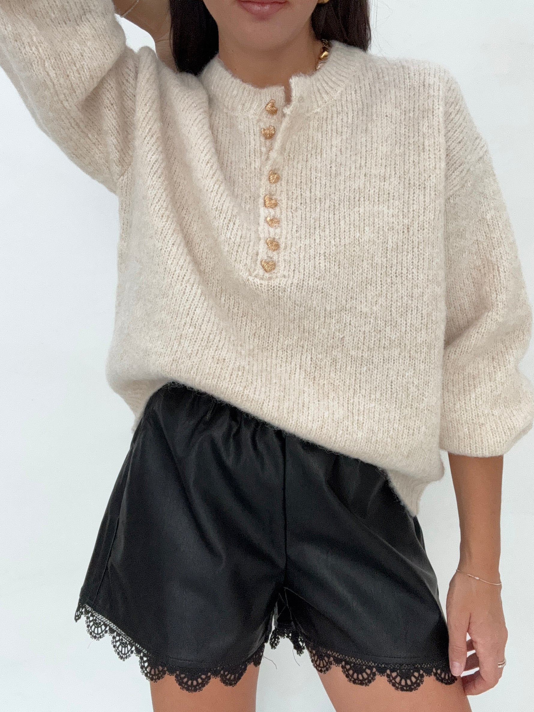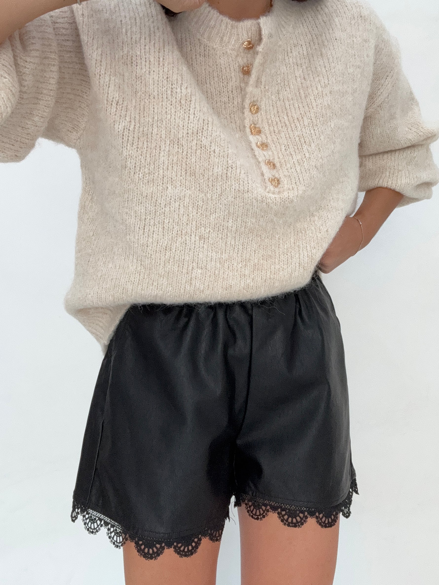 Pantaloncino ‘ECOPELLE DETTAGLI PIZZO’ Nero