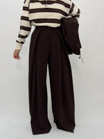 Del pantalone indossa taglia S(36), consigliamo una taglia in più, per chi oscilla tra due taglie chiusura con bottone e maxi pence sul davanti, gamba super morbida ed ampia, tasche sul davanti, poco elastico, moderato internamente.