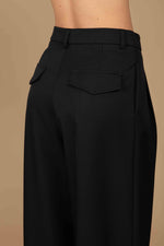 Pantalone vita alta con tasche vere sul davanti a scomparsa, mentre sul retro sono finte, chiusura gancetto bottone a scomparsa e zip, pence sul davanti, non ha elastico sul retro,gamba morbida leggermente palazzo, internamente ha il pile, poco elasticizzato consigliamo una taglia in più.