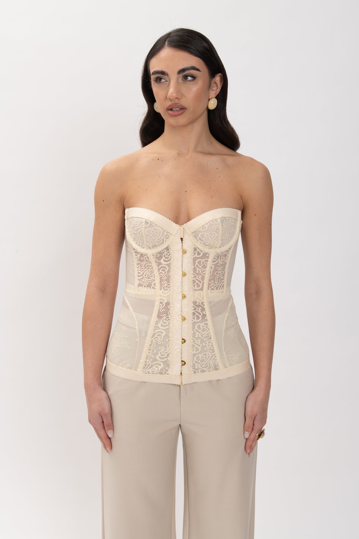 Corpetto ‘IN PIZZO CON STRINGHE’ Panna
