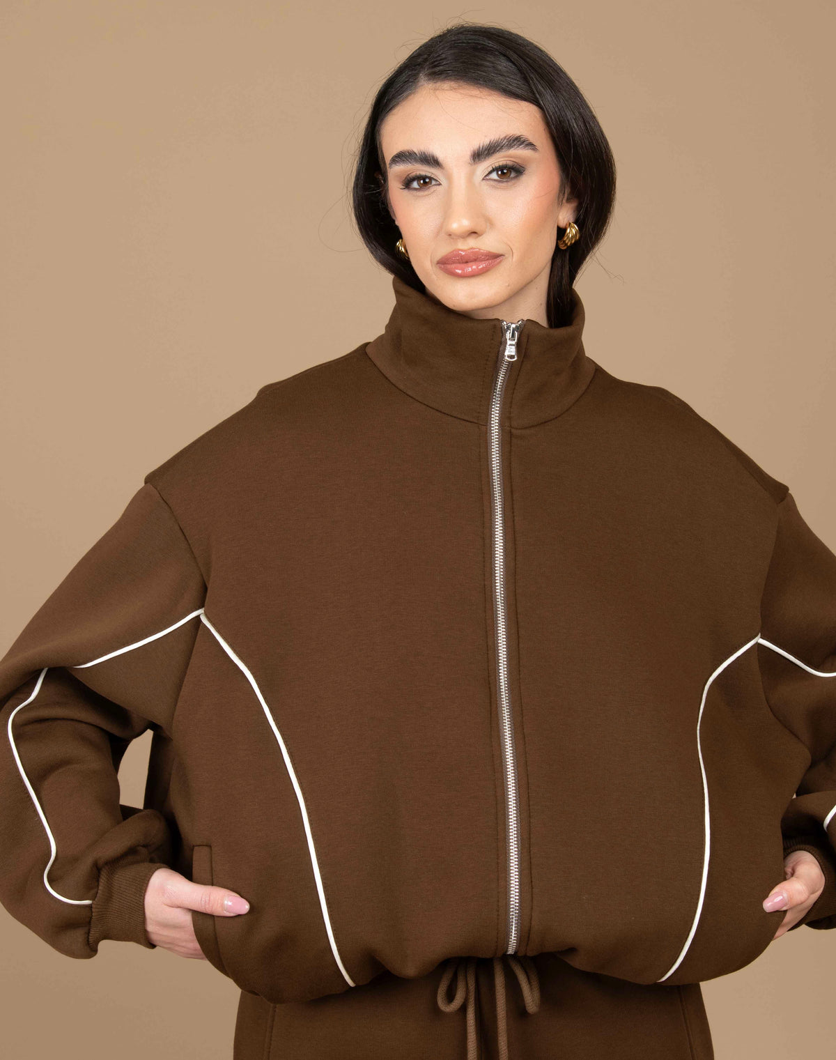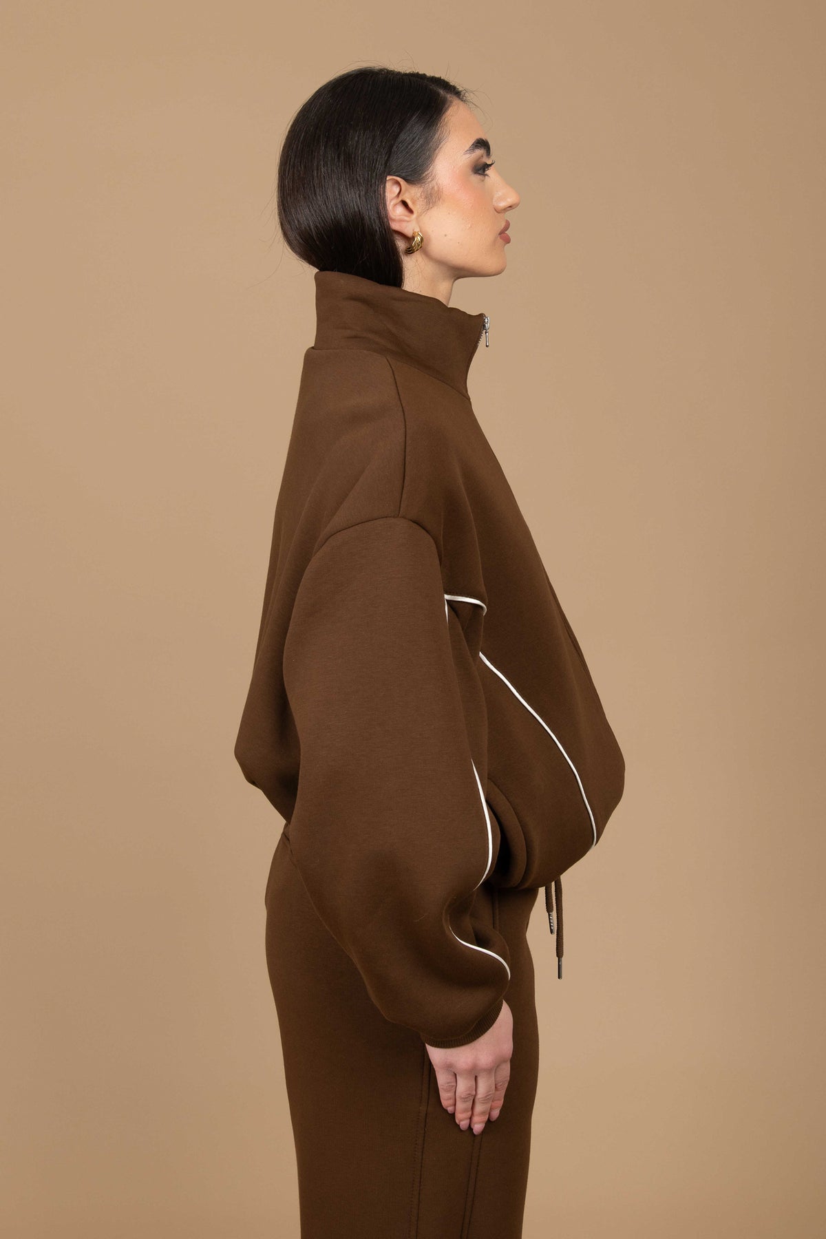 Felpa con zip ‘COLLO ALTO’ BY LUMINA’ Cacao