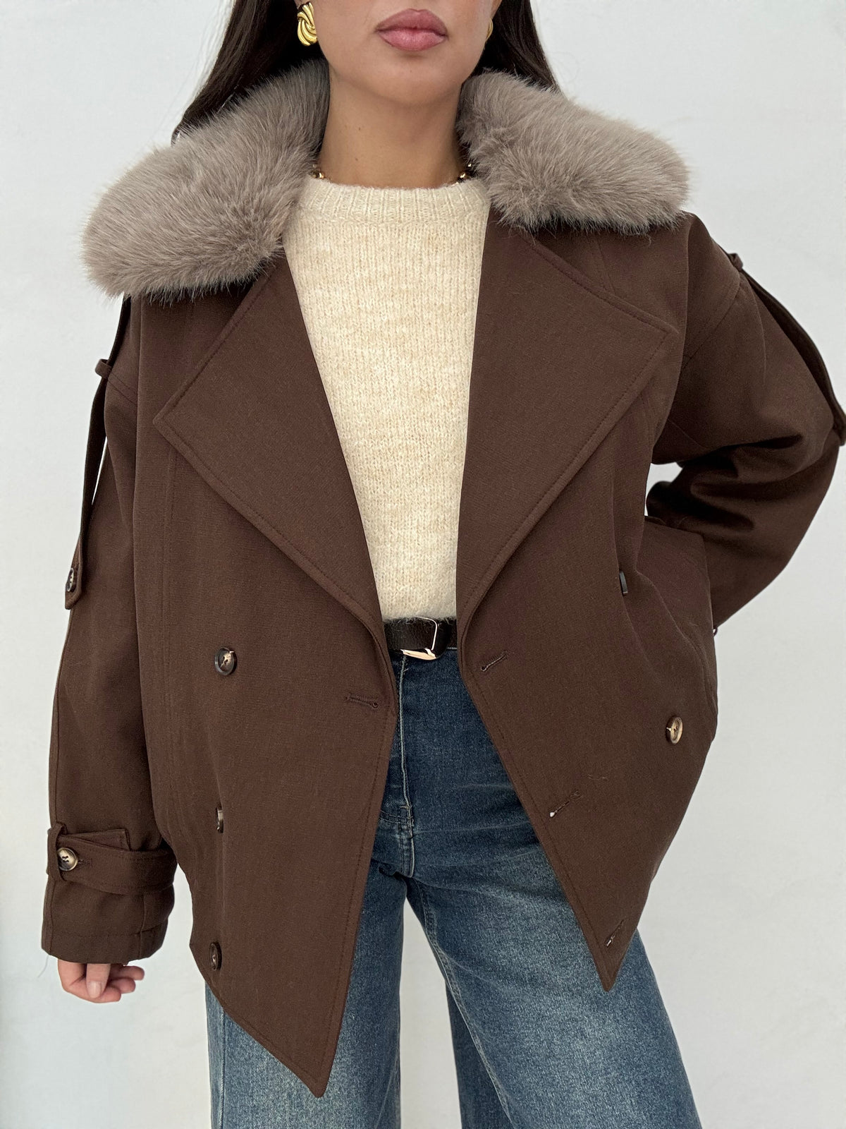 Bomber ‘WINTER’ con collo in pelliccia Cacao