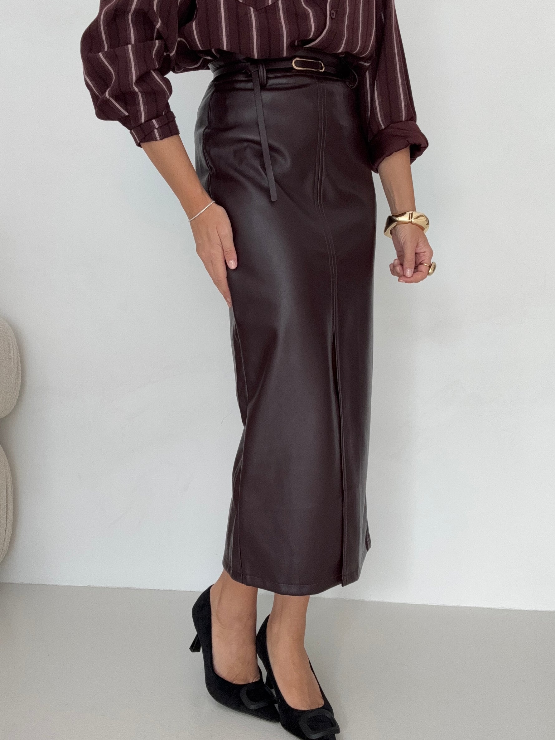 Gonna ‘SPACCO CENTRALE’ in ecopelle Bordeaux
